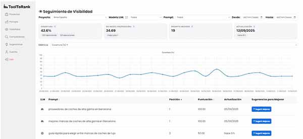 El 90% de las empresas no sabe qué responden los LLMs sobre su marca. ToolToRank te muestra en tiempo real tu visibilidad y te da sugerencias con IA para dominar esas respuestas.